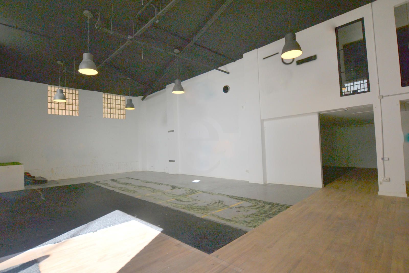 Anteriormente utilizado como gimnasio, ofrece una distribución muy funcional: una planta baja de 242 m², con varios espacios diáfanos y zonas de trabajo abiertas.