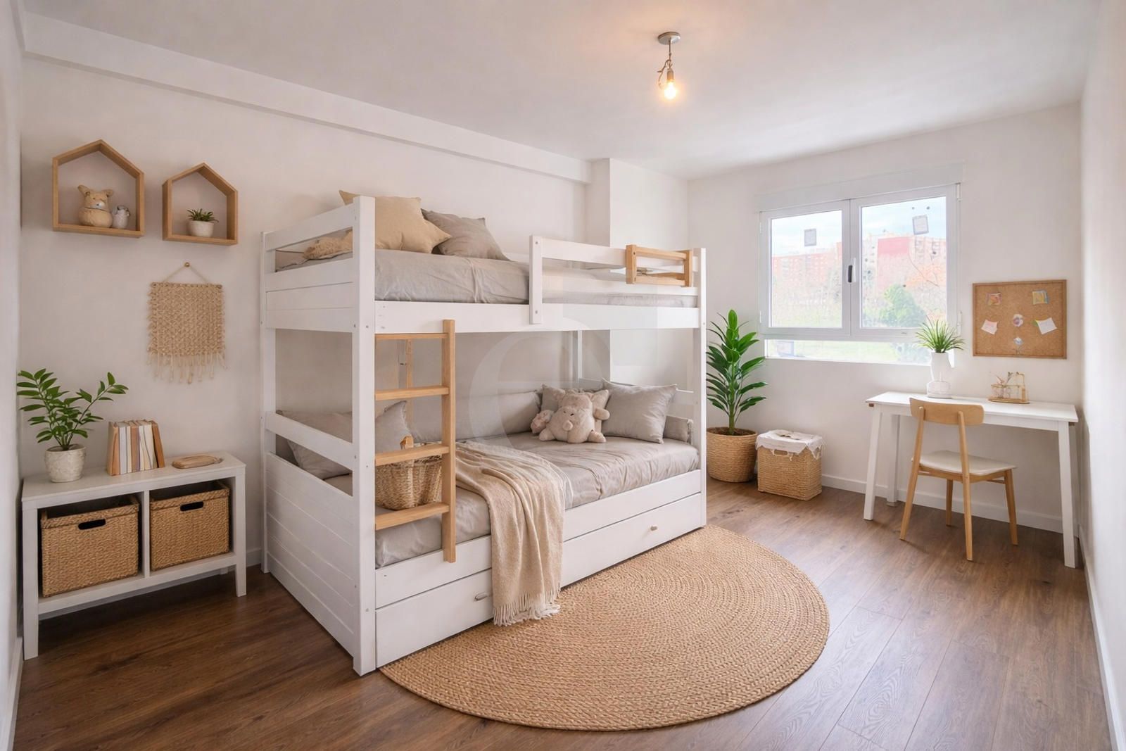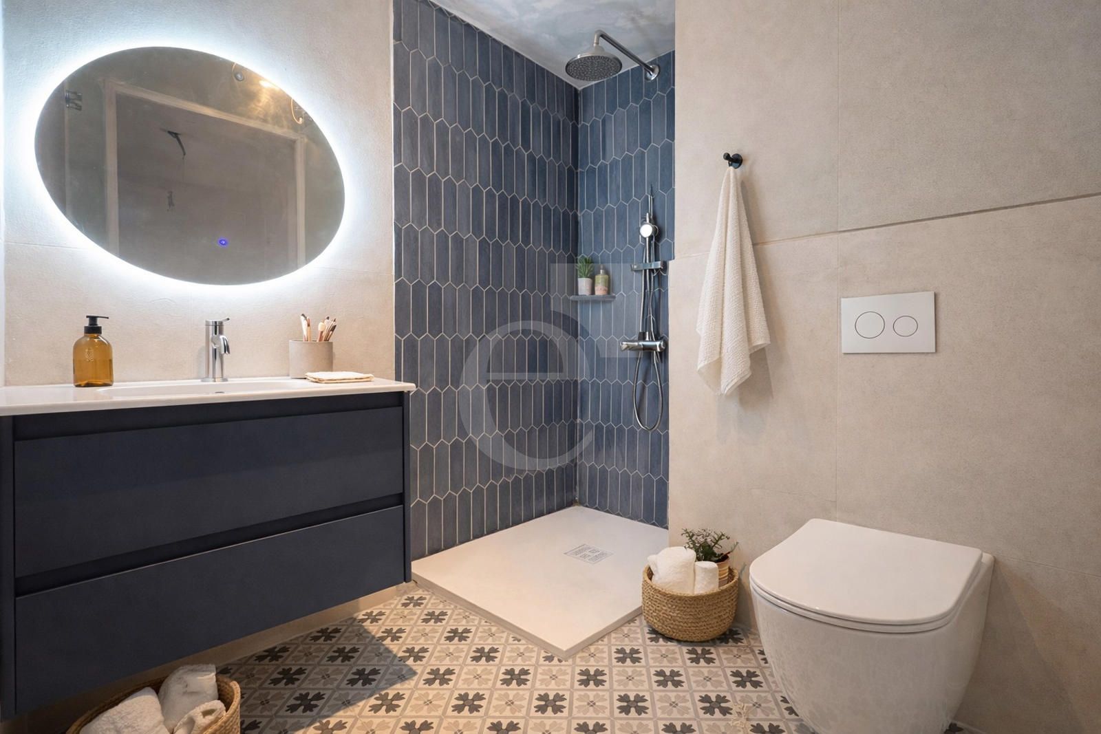 Dispone de 3 habitaciones, una doble con armario empotrado, y dos individuales, todas ellas exteriores y con muy buena luz natural; y 2 baños completos con plato de ducha.
