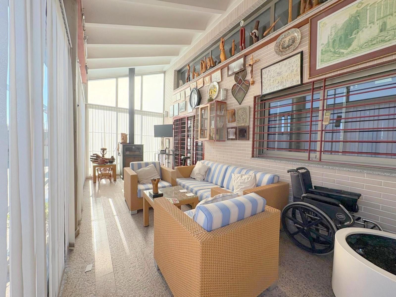 La planta cuenta también con un porche acristalado con chimenea tipo estufa, ideal para disfrutar durante todo el año.