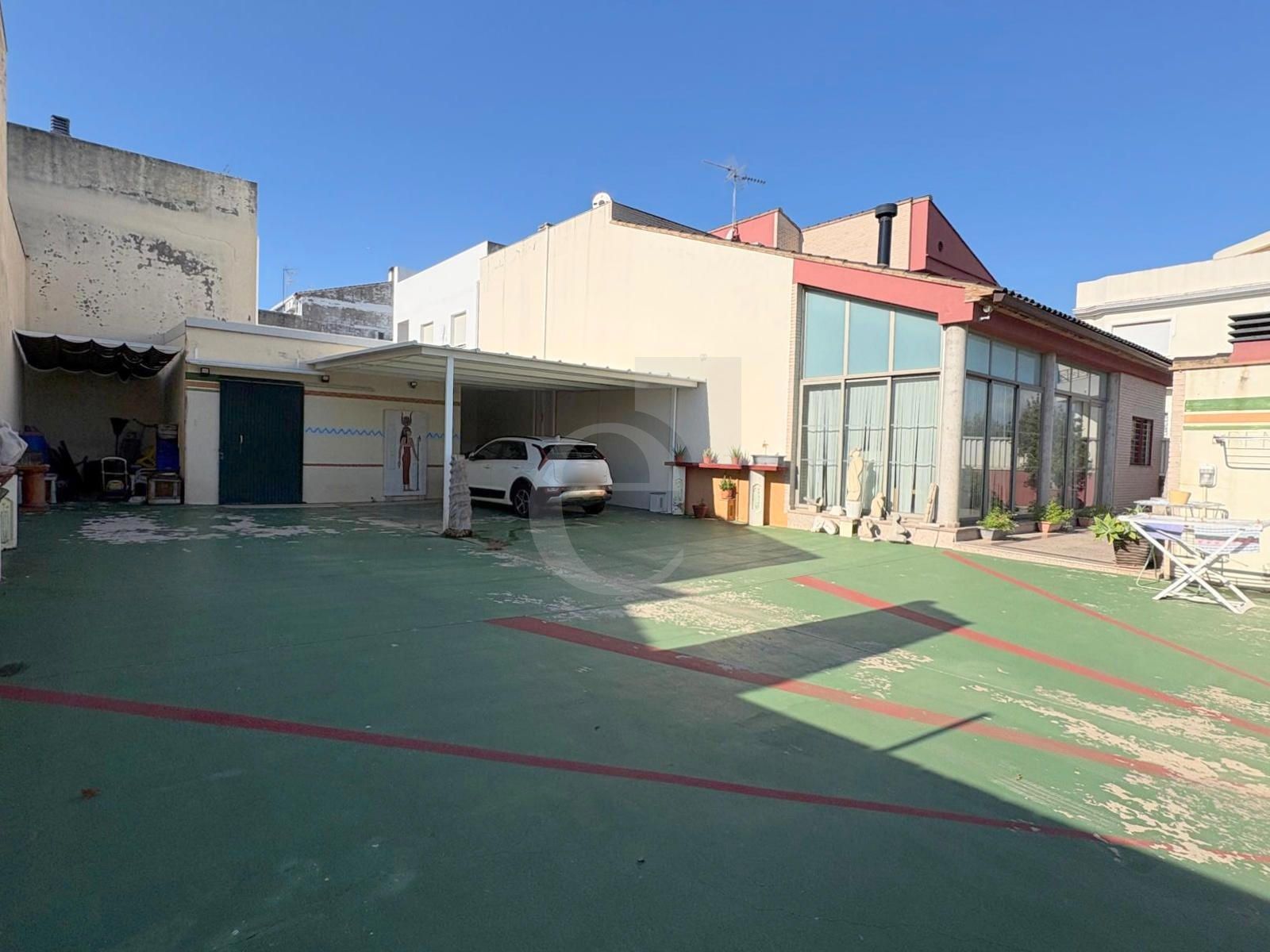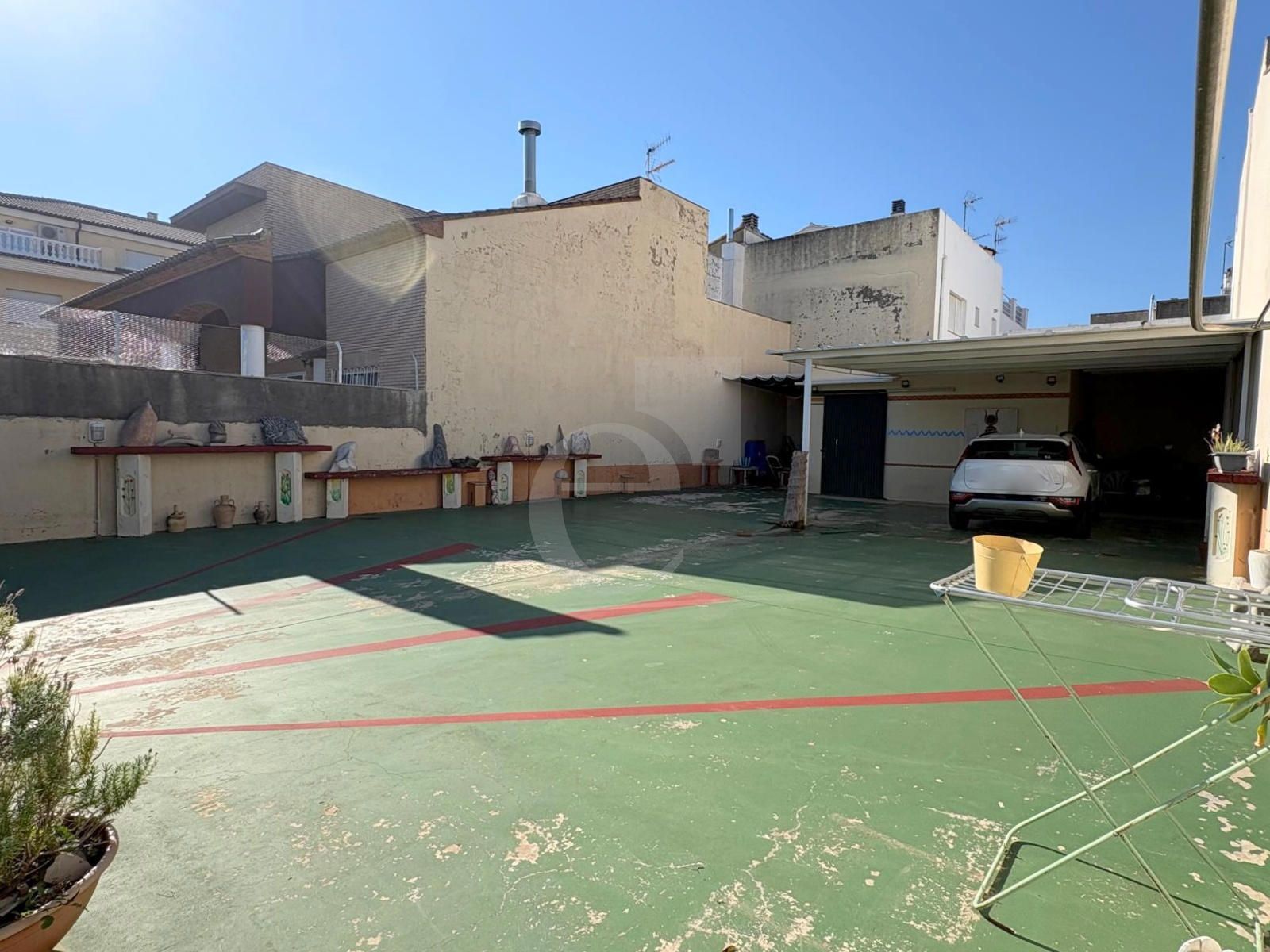 En la parcela edificable actualmente se dispone de un gran aparcamiento con almacén y zona de juegos.