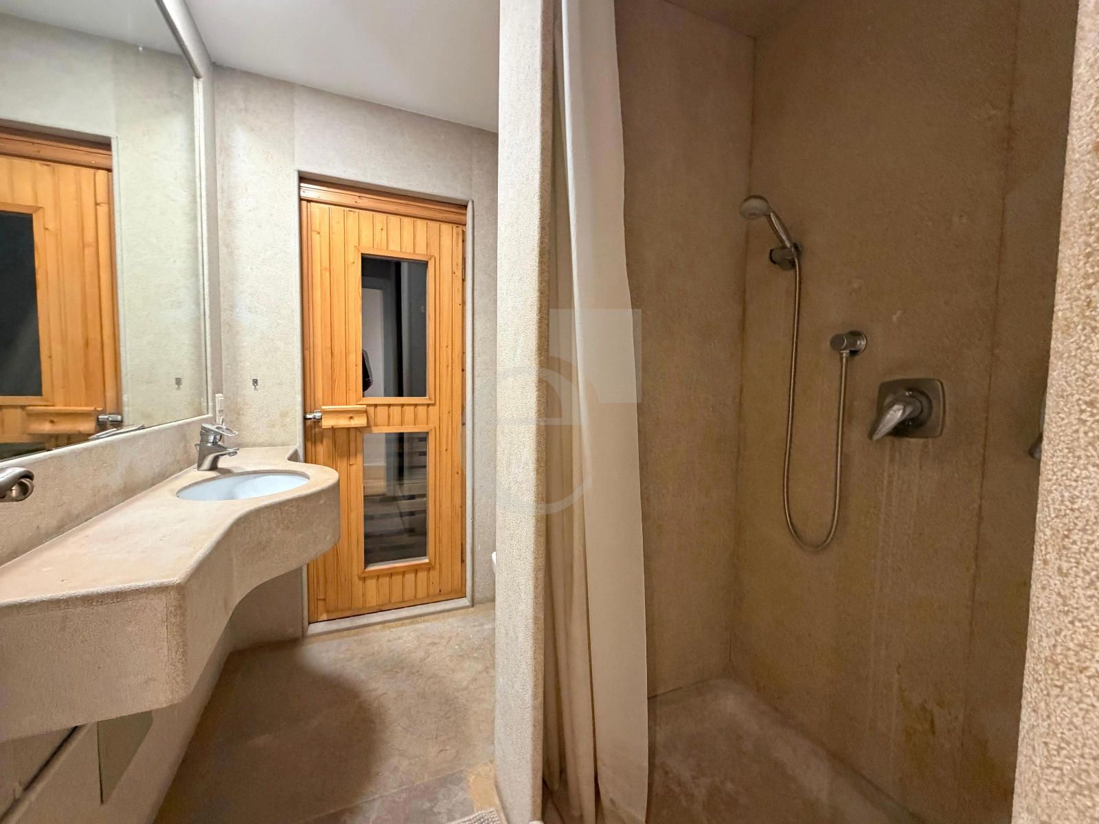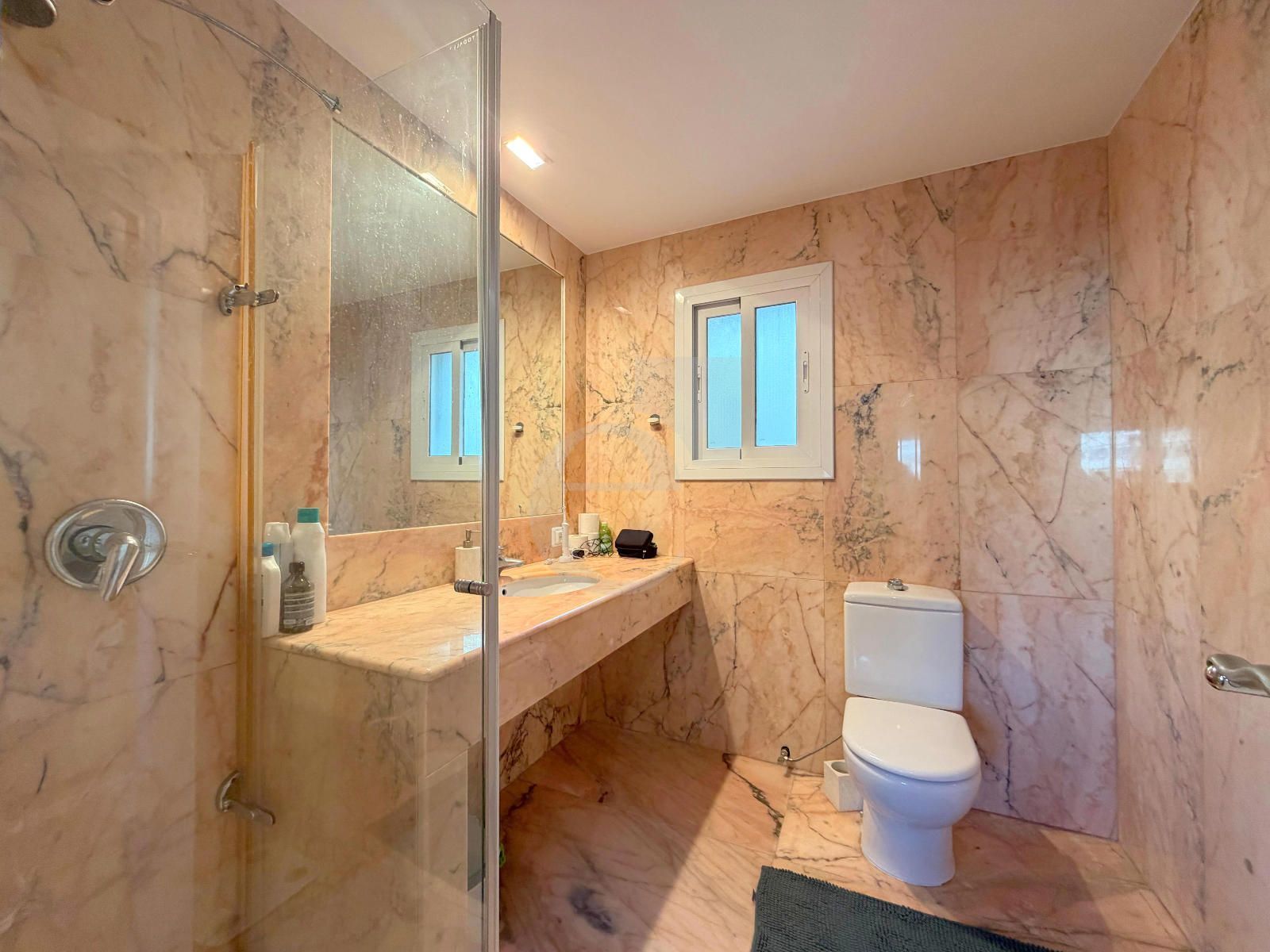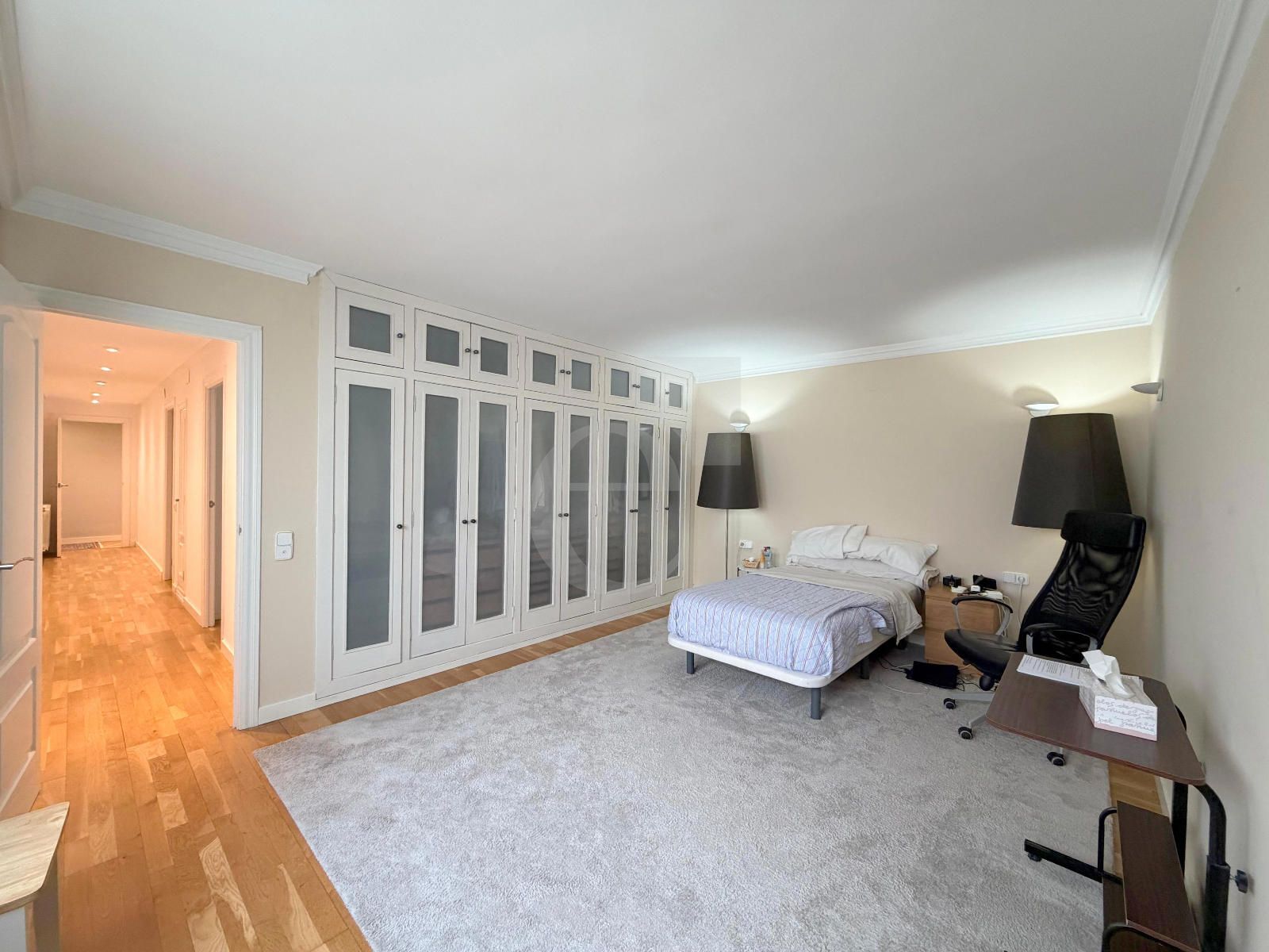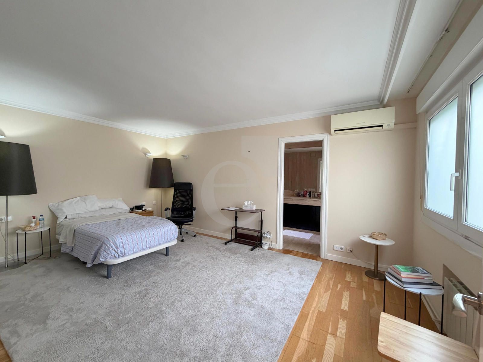 Consta de hall de acceso, gran salón con comedor anejo. Cuenta con 3 grandes dormitorios (cada una con su baño) y 5 baños en total. Uno de los baños incluye sauna privada y ducha de hidromasaje, vestidor y amplio armario.